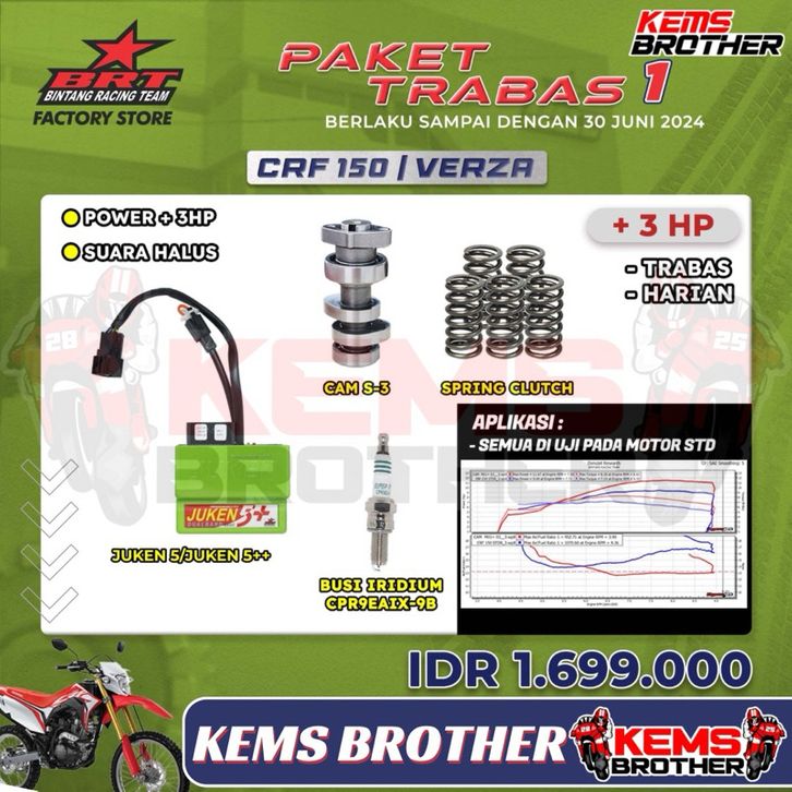 PAKET HEMAT BRT CRF 150 VERZA TRABAS 1 STANDAR (ECU JUKEN 5+ DUALBAND HIJAU, NOKEN AS, PER KOPLING, BUSI RACING)