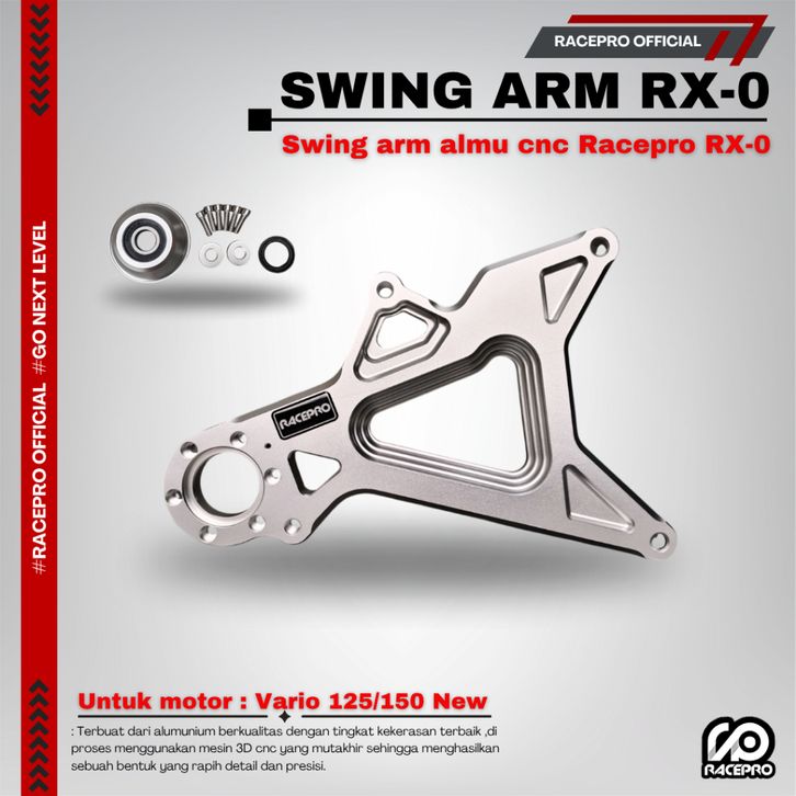 SWING ARM RACEPRO RX-0 HITAM/SILVER VARIO 125/150 LED NEW ARM RACEPRO CNC MATERIAL SWING AREM
