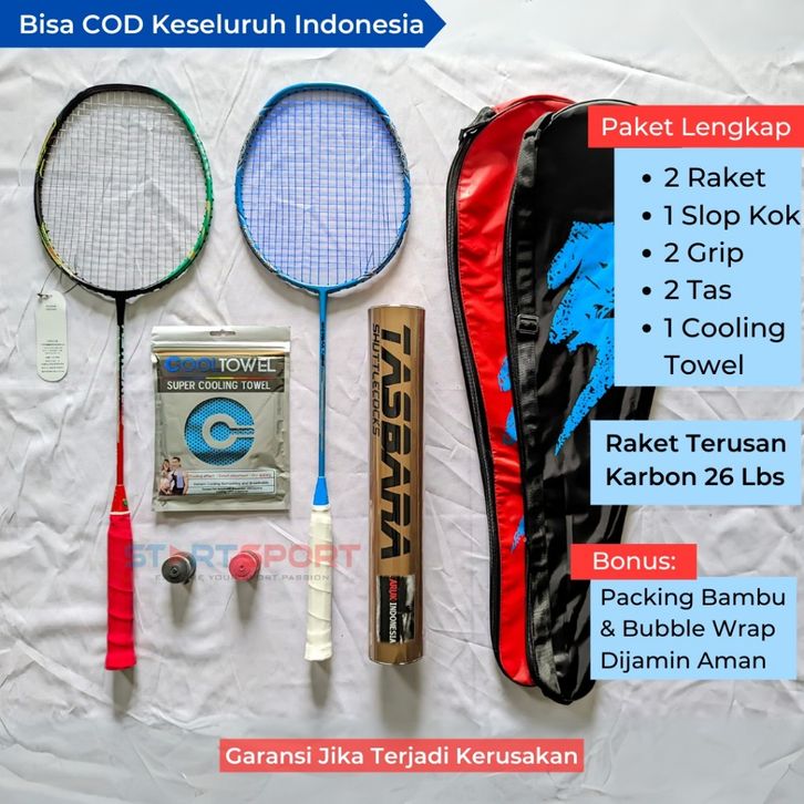 Raket Badminton Set Raket Badminton Bulutangkis Carbon 26 lbs Isi 2 Lengkap Free Tas 9rip Bonus Shuttlecock