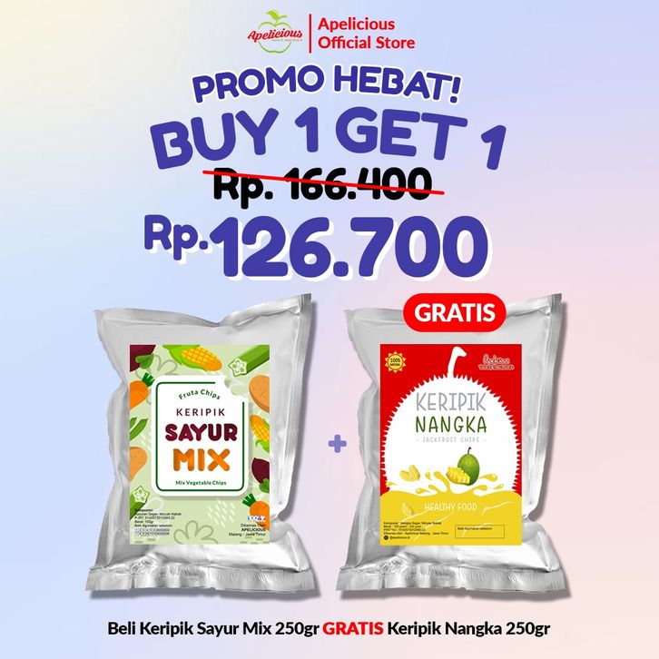 Apelicious Keripik Sayur Mix Original 250gr / Keripik Buah Mix 250gr + GRATIS Keripik Buah Mix 250gr