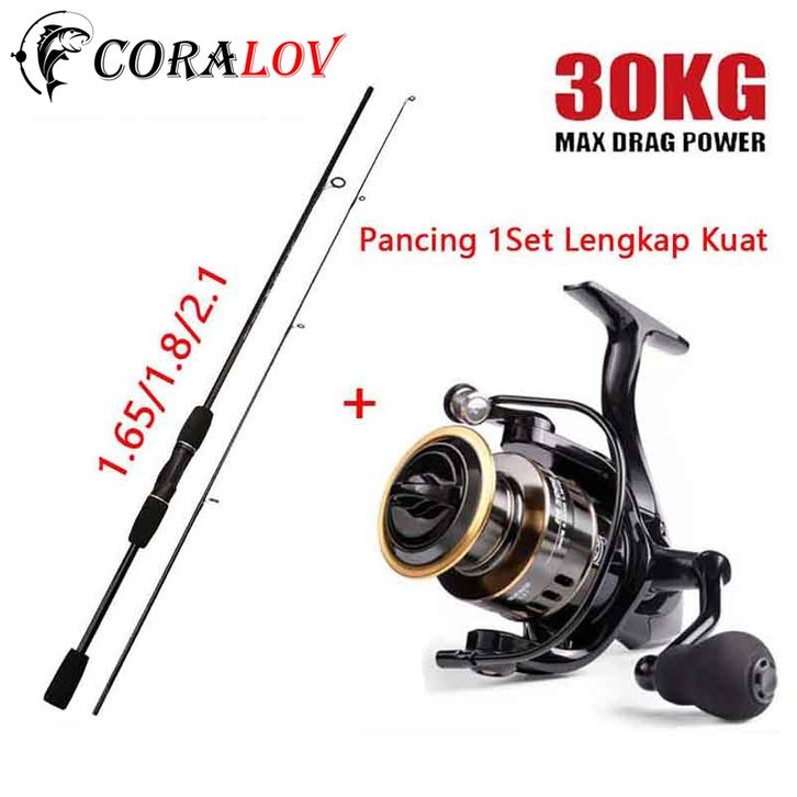 joran pancing full set daido shimano CORALOV Joran Pancing Set 1.65-2.1M Reel Pancing Set Serat Carbon Power Spinning F