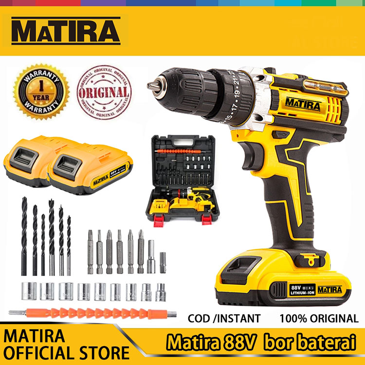 Matira 88V Mesin Bor Baterai Cas 10mm 13mm Bor Murah Besi Tembok Beton Kayu - Cordless Drill Bor - Alat Pertukangan