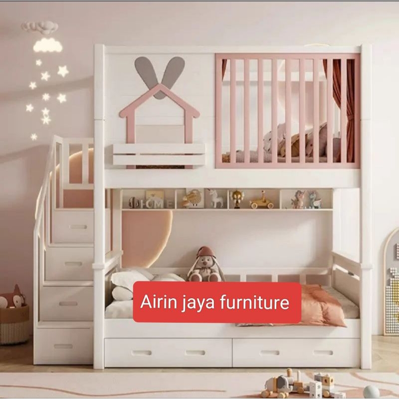 Beadhouse Anak Tingkat/Tempat Tidur Anak Tingkat TANGGA Laci.Laci Bawah 2Pcs Ukuran 120x200