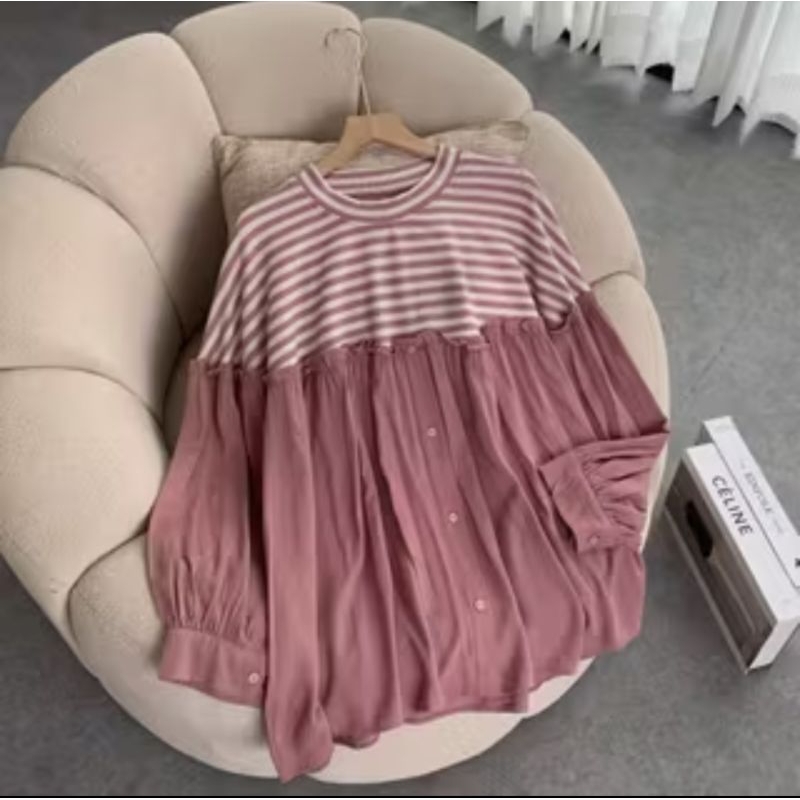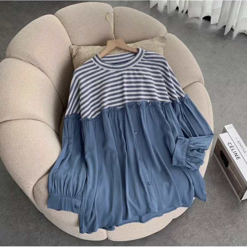 Belva Blouse Atasan Wanita Terbaru Bahan Kenit Mix Rayon