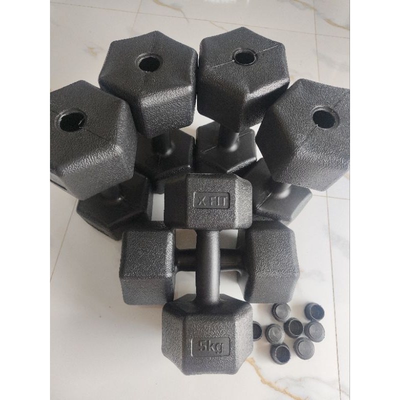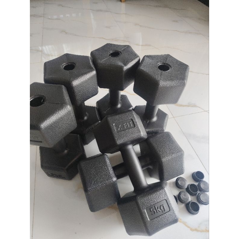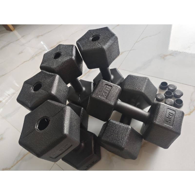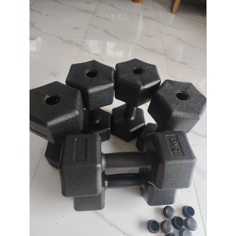 barbel dumbbel HEXAGONAL 5kg kosongan tanpa isi (2 pcs) plus tutup