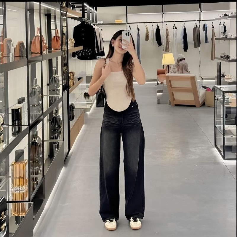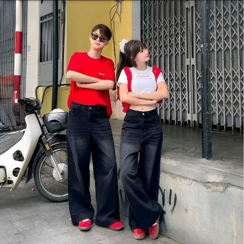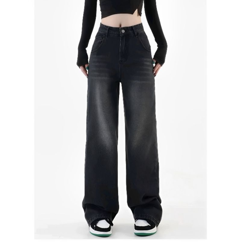 { Unisex }Celana Jeans Baggy Gombrong Wishker Celana Jeans Unisex Korean Style