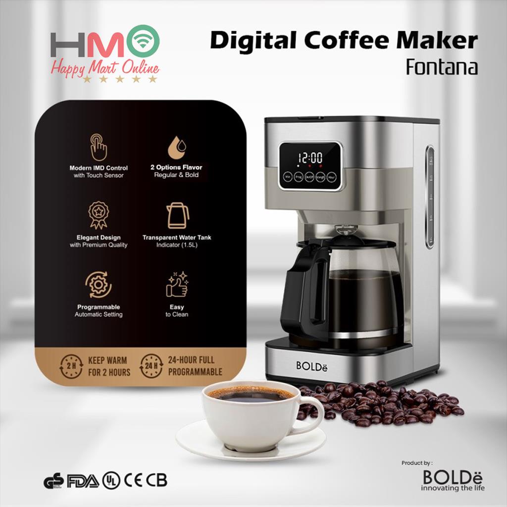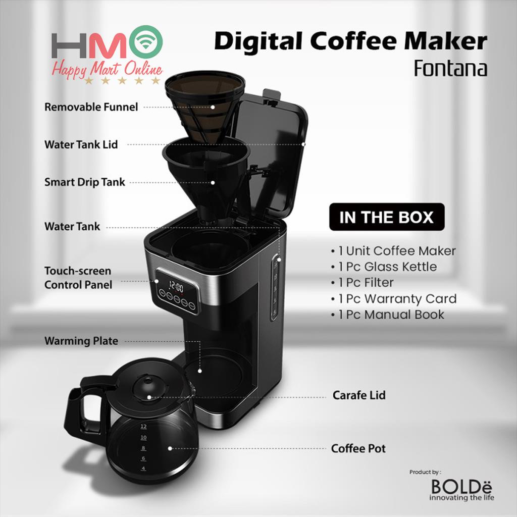 Bolde Digital Coffee Maker Fontana Mesin Pembuat Kopi otomatis Digital Touch Screen 1,5 Liter
