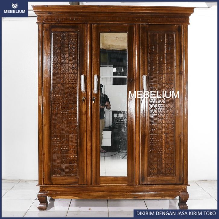 [Jabodetabek] Lemari Pakaian / Baju Rak Hijab 3 Pintu Bahan Full Kayu Jati Anti Rayap Mebelium terlaris