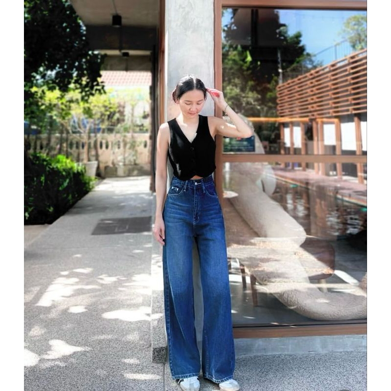 Celana Baggy Jeans Highwaist Loose Whisker Quality Premium