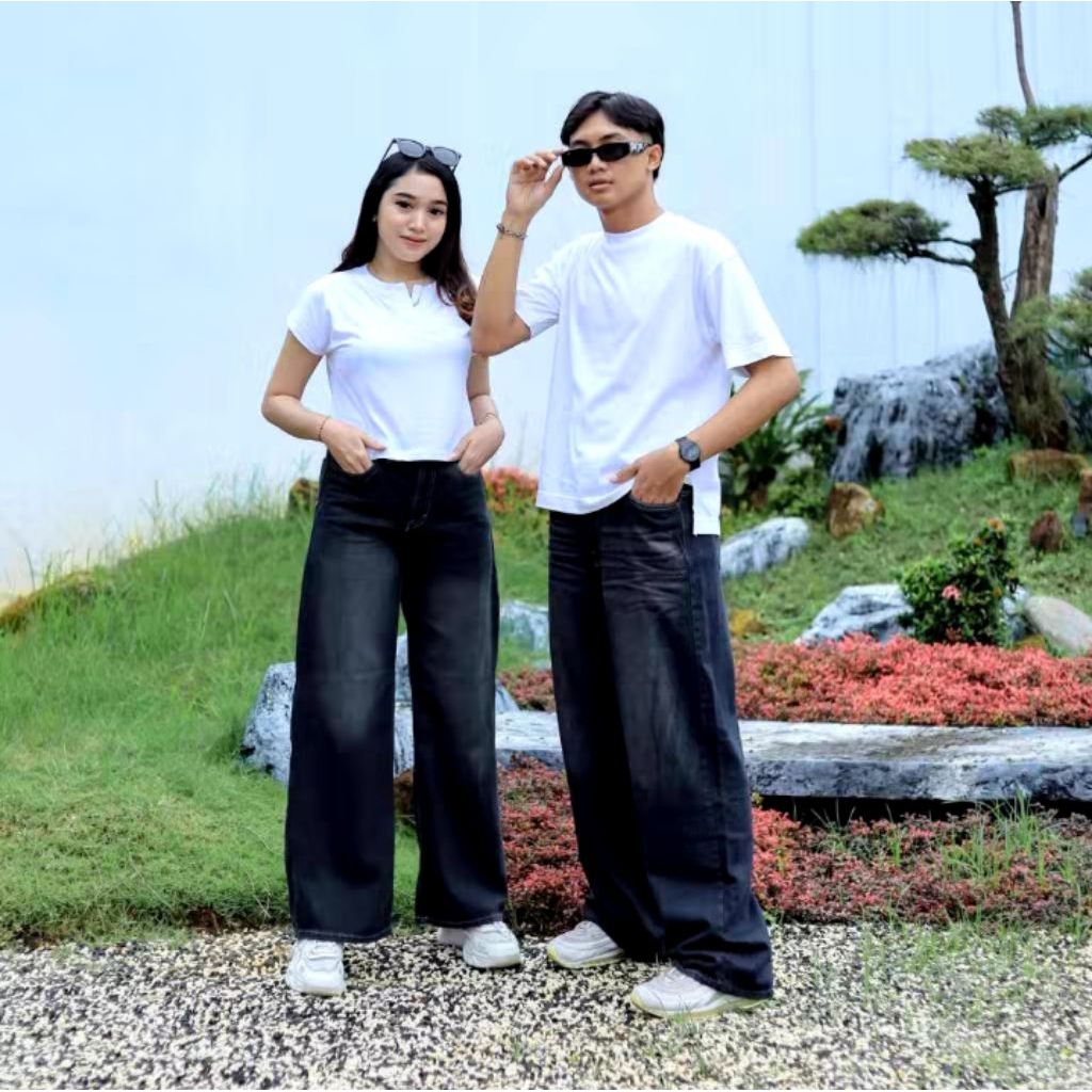 [Unisex] Baggy Jeans Tebal Retro Wide Leg Long Oversize Korean Size 27-34 Celana Panjang Baggy Hitam Loose Denim