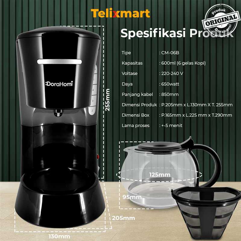 Coffee Maker Dorahomi Alat Mesin Pembuat Kopi listrik CM06B 600ml Bergaransi