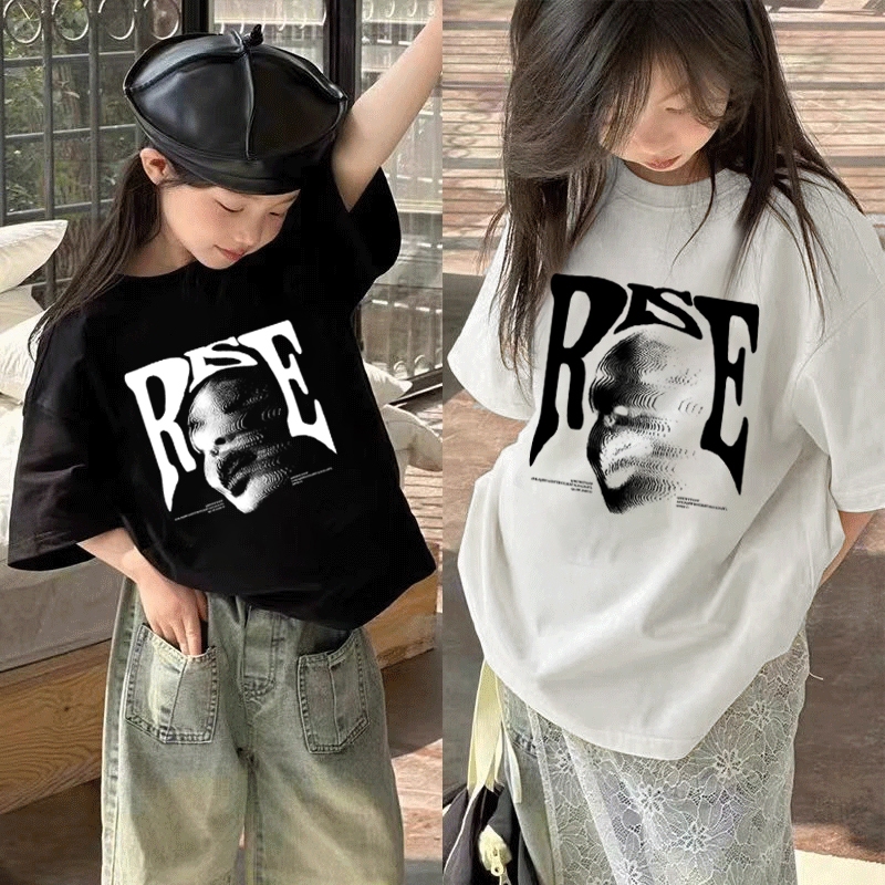 Kaos anak|cewek 10 tahun import|2-12 Tahun|kaos Cetakan RISE yang lucu|korea style premium baju atasan|Kaos anak perempu