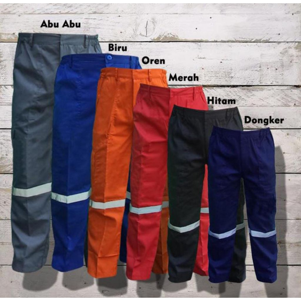 (DIKIRIM DARI BANDUNG) Celana Panjang Kerja Strip Reflektif Wearpack Safety Proyek Hitam Biru Navy