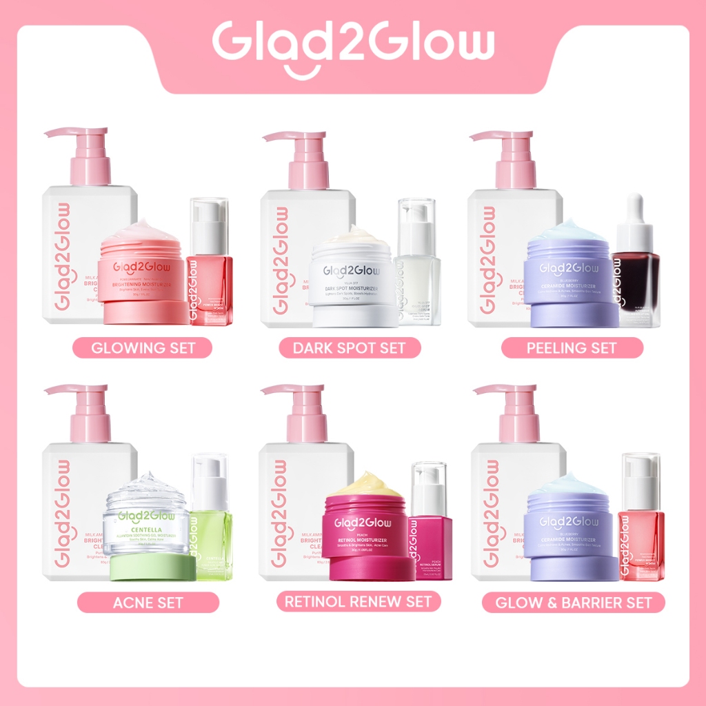 Glad2Glow SPECIAL Peeling BUNDLE 3in1 3pcs Paket Skincare Moisturizer Serum Face Wash GLOWING KIT Dark Spot ACNE KIT