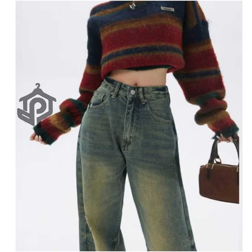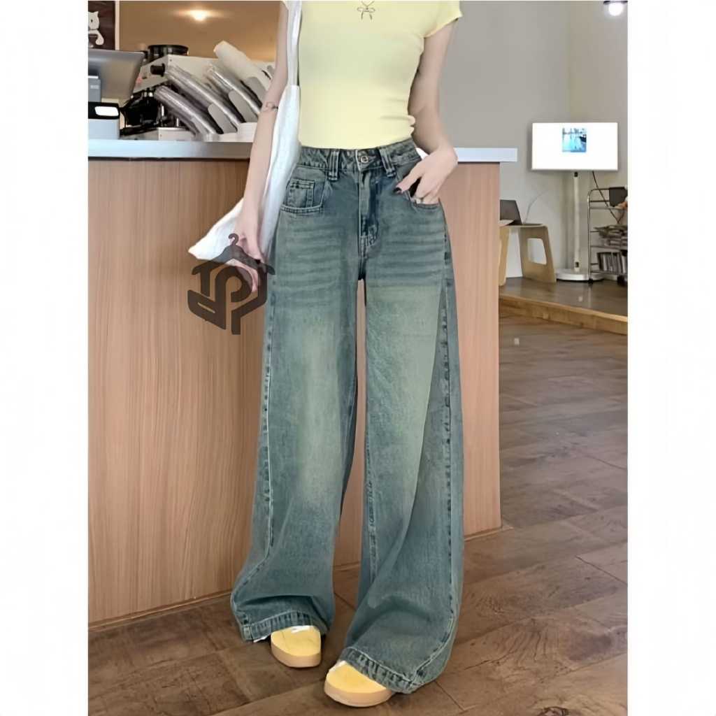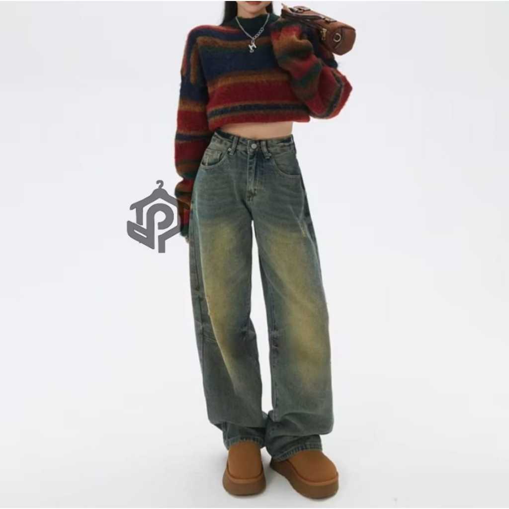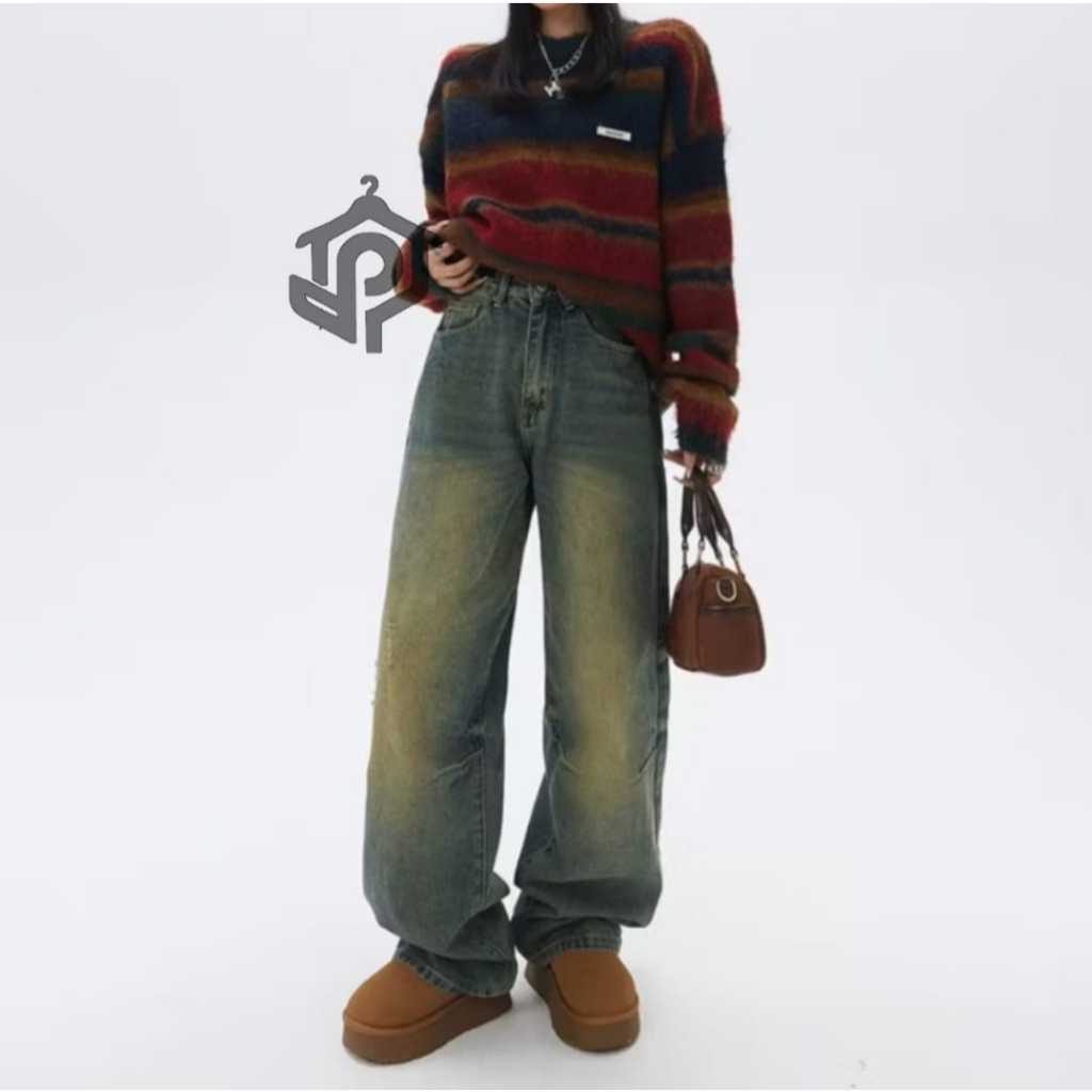 Highwaist Retro Vintage Unisex Baggy Jeans Hangover-Celana Jeans Loose Pants Korean Gombrong
