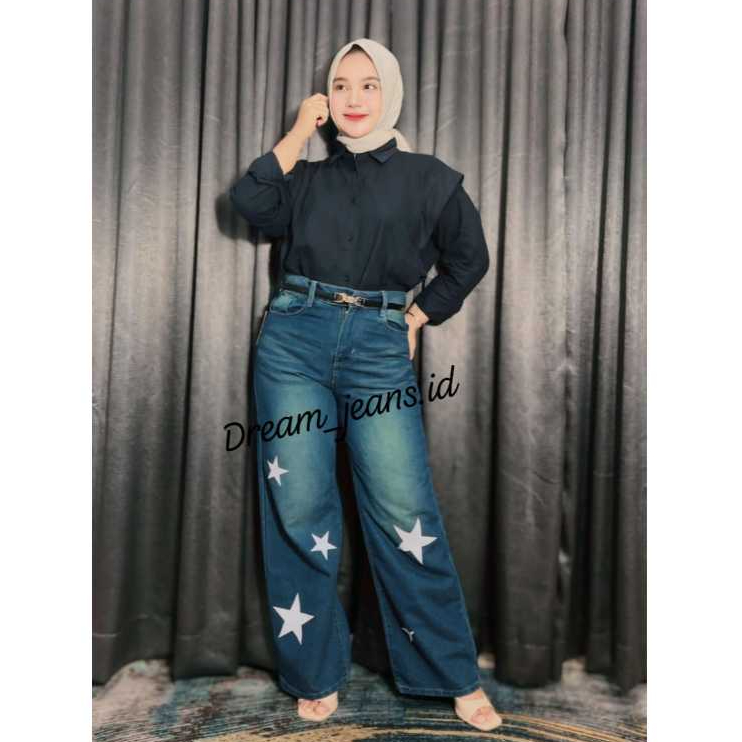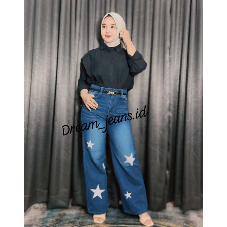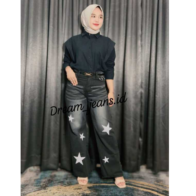 Highwaist Oversize Baggy Loose Weekend Jeans Korean Baggy Jeans Motif Star Terbaru