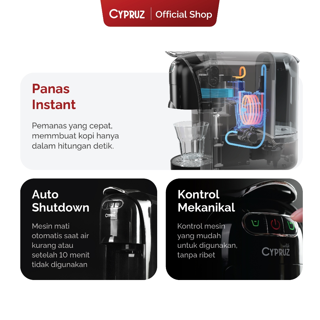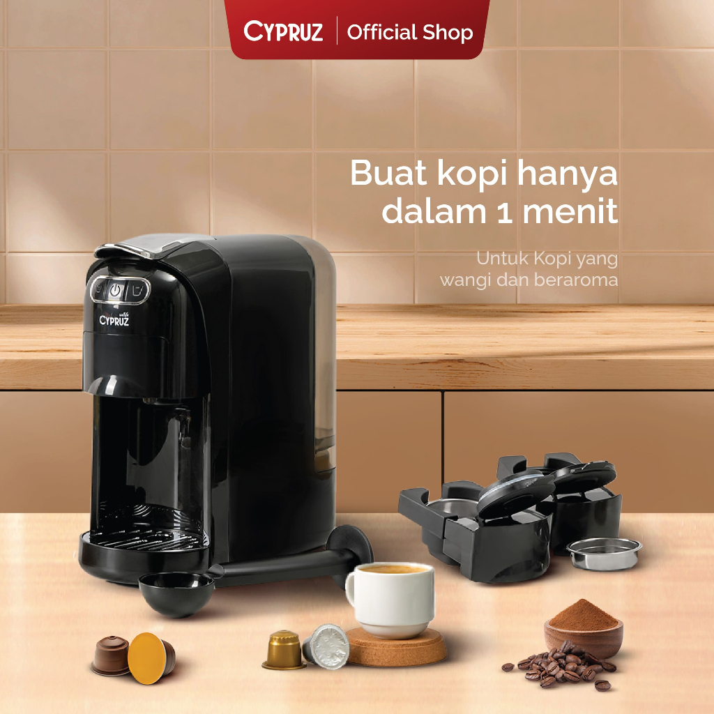 Cypruz Coffee Capsule Machine Alat Pembuat Kopi 3 In 1 (Nes Capsule, Dolce, Kopi Bubuk)