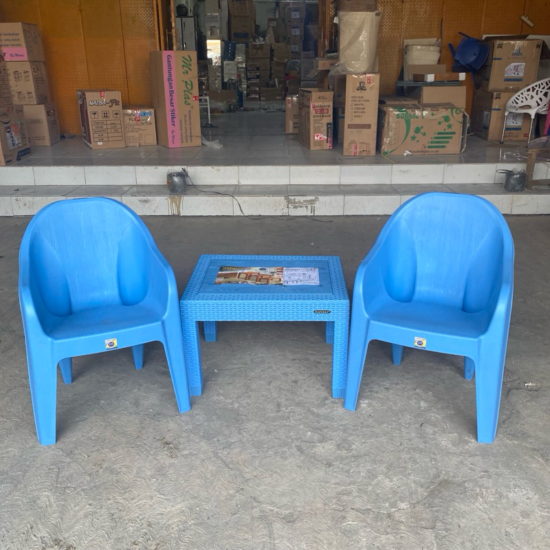 Kursi Teras Plastik 1 Set 2 Kursi Teras Santai Tcc 500 Napolly + Meja Serbaguna Napolly Jati Kursi Tamu Plastik