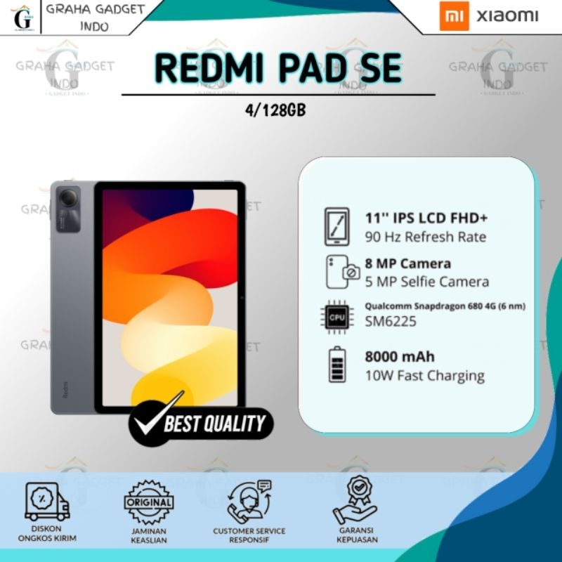 REDMI PAD SE WIFI (4/128GB) GARANSI RESMI 100 PERSEN ORIGINAL GARANSI RESMI XIAOMI TAM INDONESIA