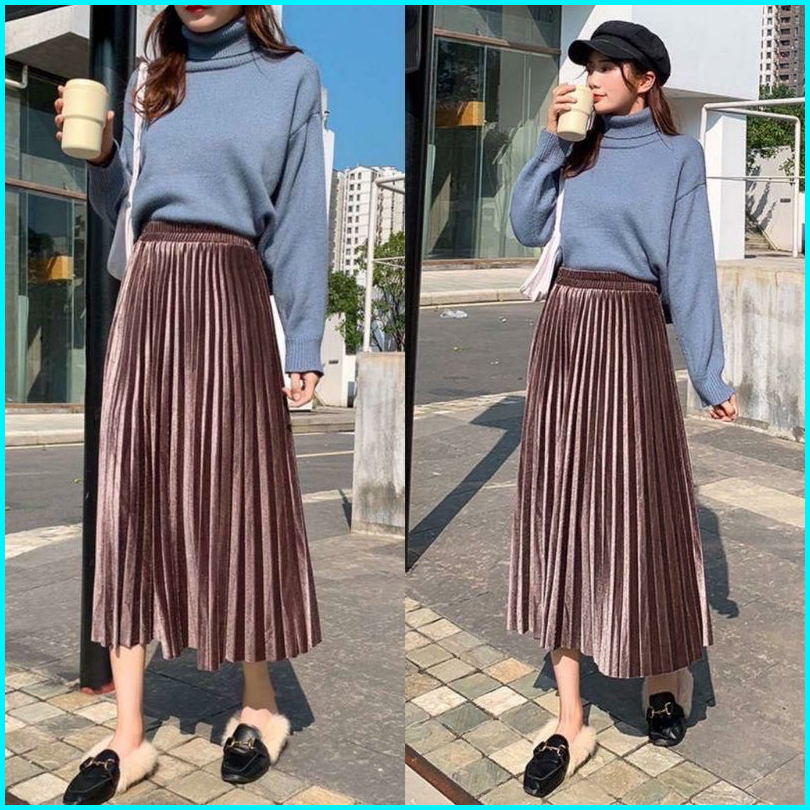Rok Bludru 7 8 Rok Velvet Rok Pendek Midi Tanggung Grosir Murah