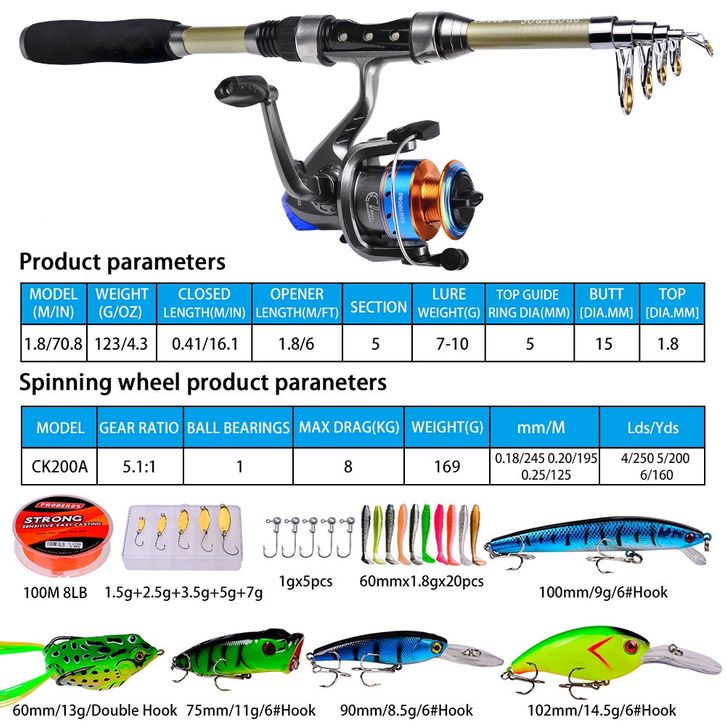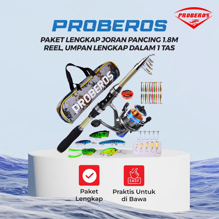 Tas Pancing PROBEROS Paket Pancing HWCSET068 Joran 1.8m Reel Umpan 200g Tas Pancing PP139