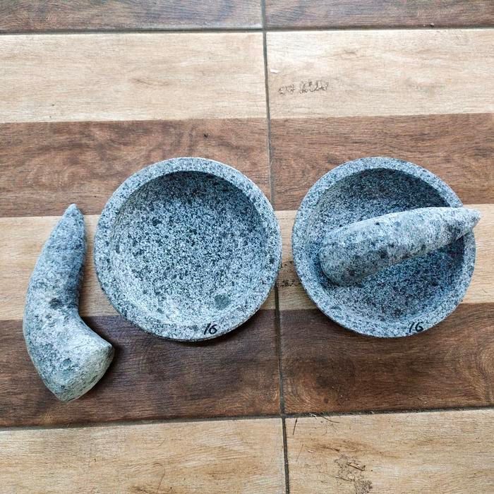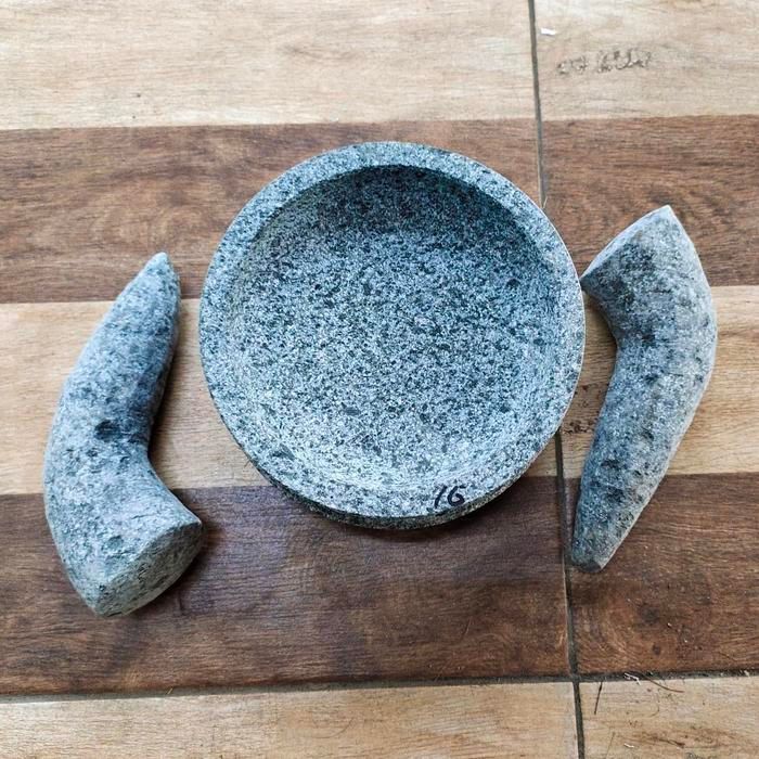 Cobek Batu Bubut 16 cm + Ulekan Batu Asli 100 % Batu Asli.
