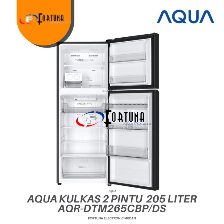 PROMO AQUA ELEKTRONIK AQR-DTM265CBPDS KULKAS 2 DOOR 205L - TURBO COOLING WITH ORGANIZED STORAGE DARK SILVER MEDAN GARAN