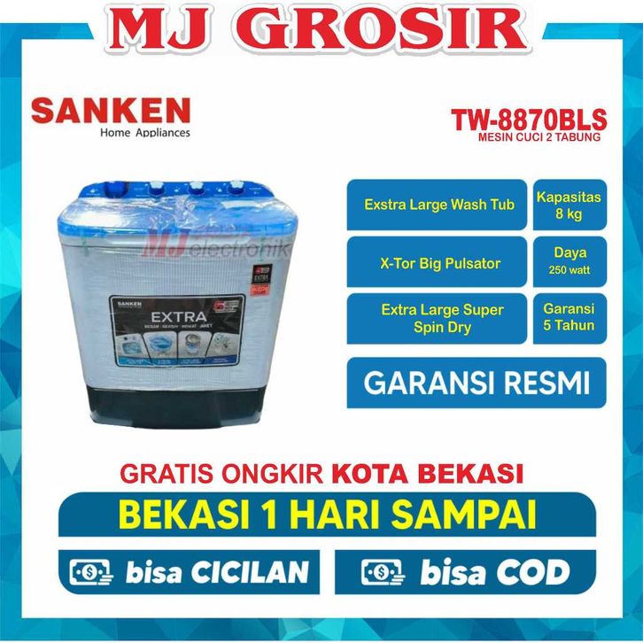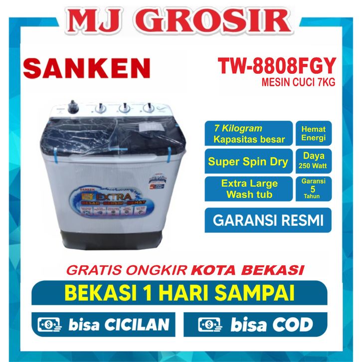 MESIN CUCI SANKEN TW 8808 FGY / 8900 BK 7KG 2 TABUNG X TOR TECHNOLOGY