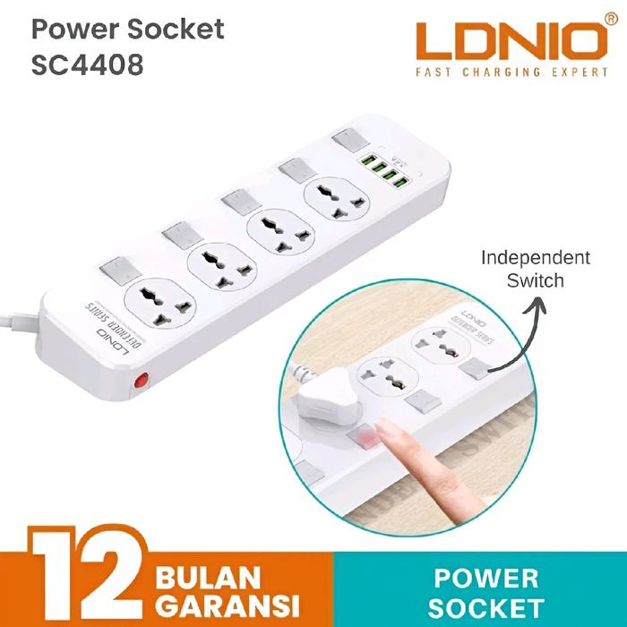 LDNIO Steker Colokan Listrik Stop Kontak 4 Lubang USB Socket ON OFF SC4408