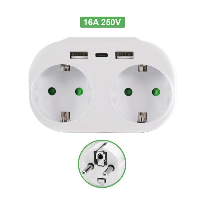 Stop Kontak USB Type C EU Plug Flame Retardant 16A 250V Wallpad Steker Colokan Listrik T Tembaga