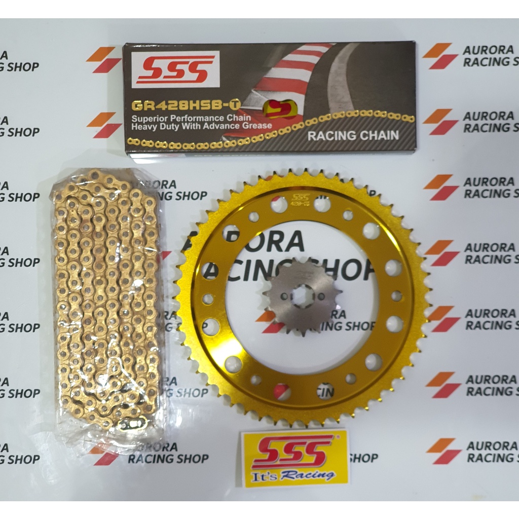 GEAR SET SSS GOLD HONDA CRF 150 & RANTAI SSS 428 HSBT 140L GOLD