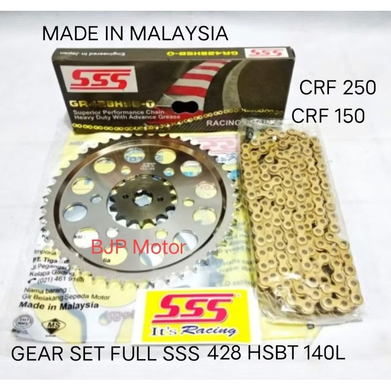 Gear Set SSS 428 Honda CRF 150 rantai SSS 428 HSBT 140L Gold pilihan di ukuran gir depan dan belakang