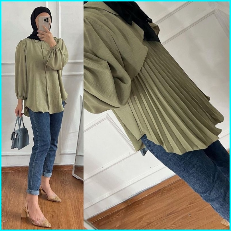 Cantika Blouse Plisket Premium Kemeja Plisket Crinkle Airflow