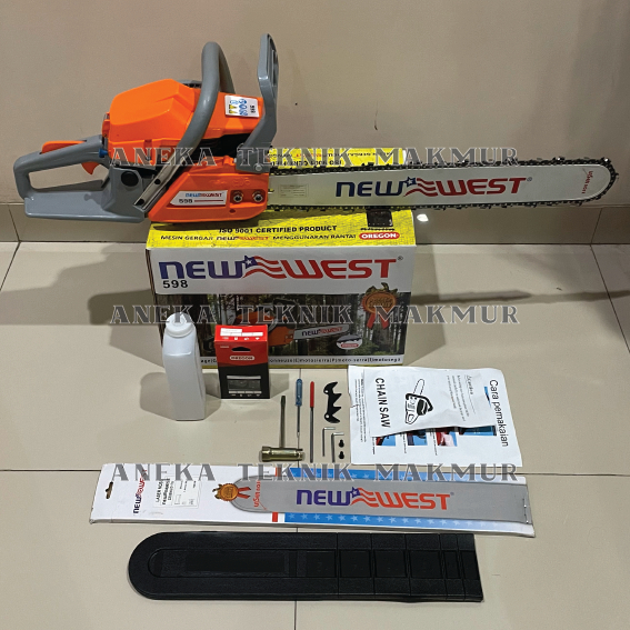Chainsaw New West NW 598 Komplit Siap Pakai + Bar 22" Mesin Potong Kayu Gergaji Pohon Senso NewWest