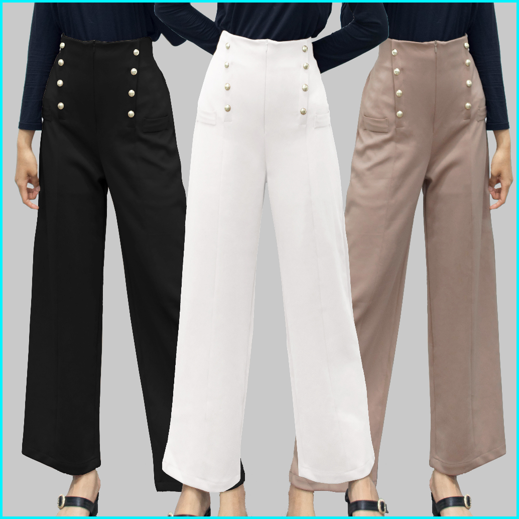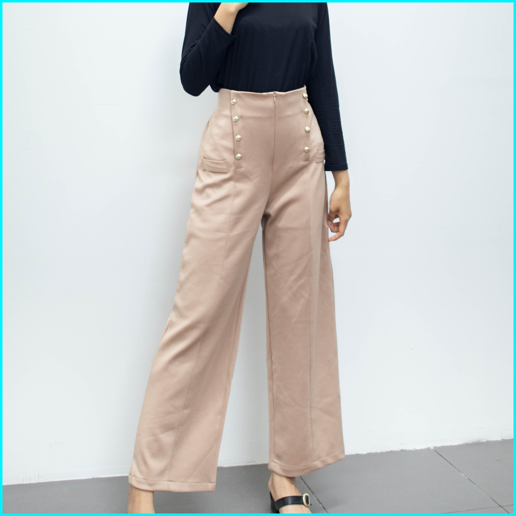 Yoona Celana Kulot Highwaist Wanita Kancing Highwaist Long Pants Button