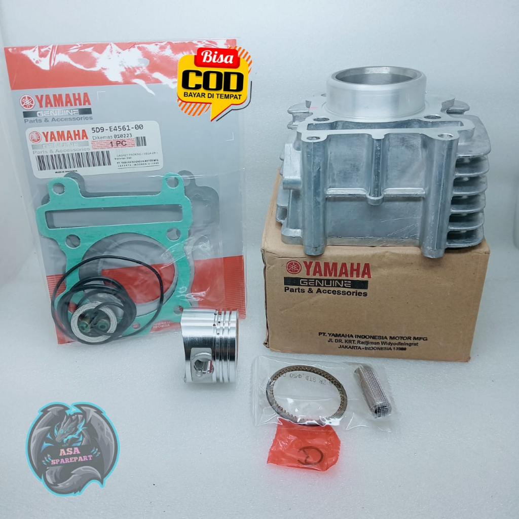 BLOK SEHER SET + TOPSET 5d9 Asli Original Motor Yamaha VEGA ZR , VEGA RR , JUPITER Z new ROBOT BLOCK PISTON A55Y Satu Set Paking Packing silinder cylinder boring ring klip pen seker ori ygp