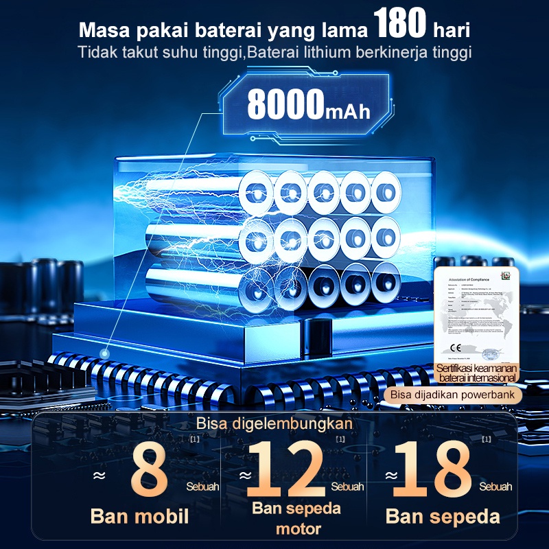 Amazefan Pompa Ban Mobil Truk Motor Elektrik Cek Tekanan kompresor mini Angin Digital 8000mAh Inflator Pompa Mobil Elekt