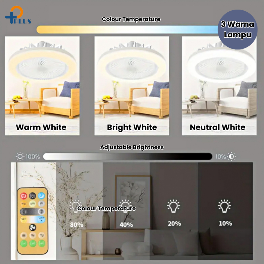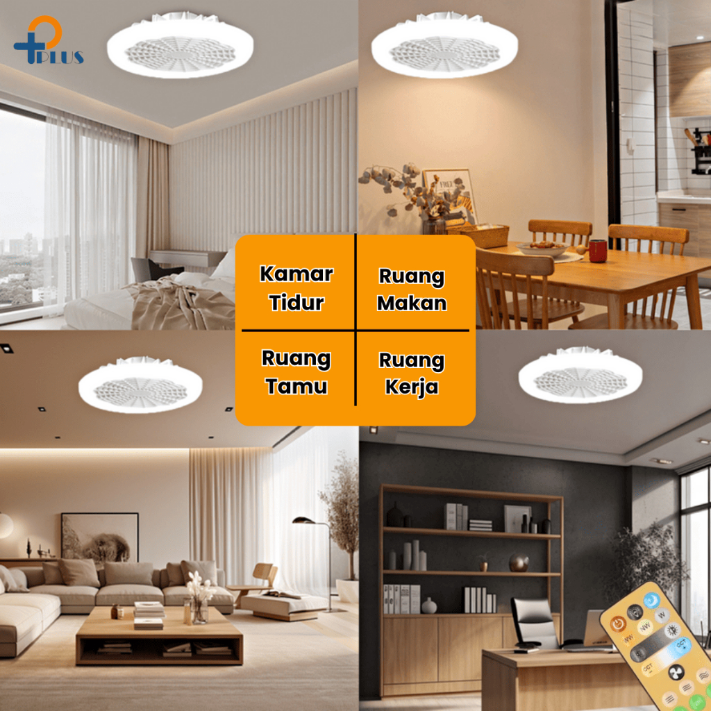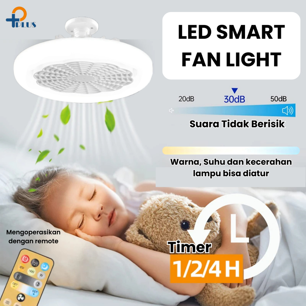 [ PPLUS ] LAMPU KIPAS ANGIN AC E27 60W LAMPU LED 60W 3 WARNA + KIPAS ANGIN GANTUNG PLAFON + REMOTE 2 IN 1