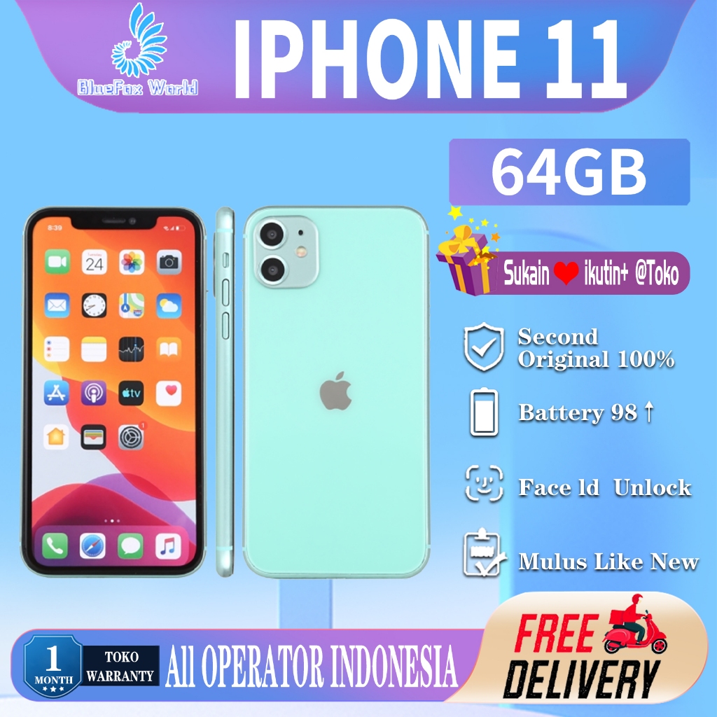 iPhone 11 64GB Second Original100 persen INTER 6.1"OLED-Ori Fullset Mulus Normal Like New Phone