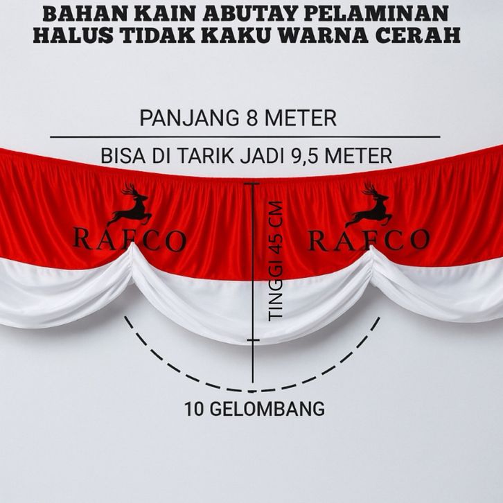 BENDERA BACKGROUND KARET MERAH PUTIH 8 METER Bendera Hiasan Bendera Kemerdekaan Bendera Merah Putih Bendera Hiasan Dindi