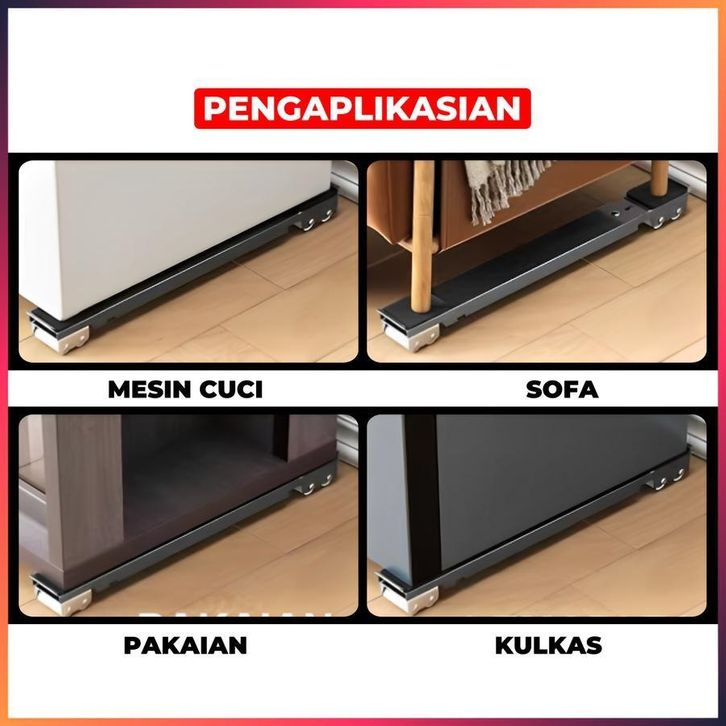 Tatakan Kulkas Mesin Cuci dengan Roda| Alas Roda Kulkas Mesin Cuci Stand Moveable Roller 70cm 2 PCS