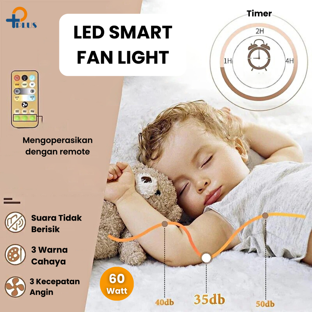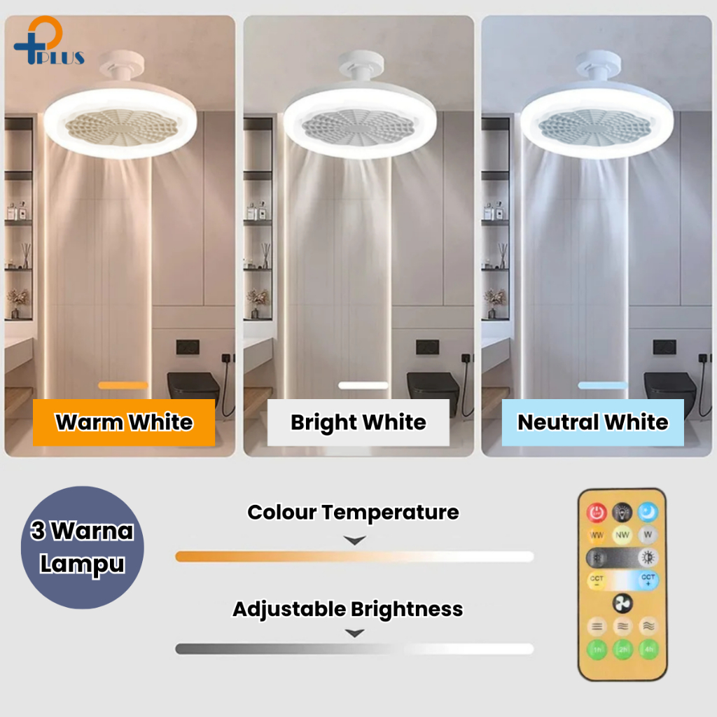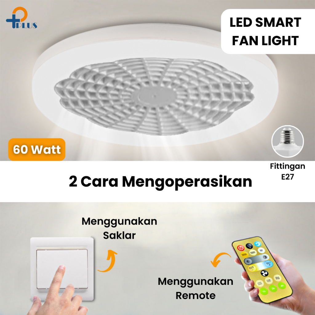 [ PPLUS ] LAMPU KIPAS ANGIN AC E27 60W LAMPU LED 60W 3 WARNA + KIPAS ANGIN GANTUNG PLAFON + REMOTE 2 IN 1