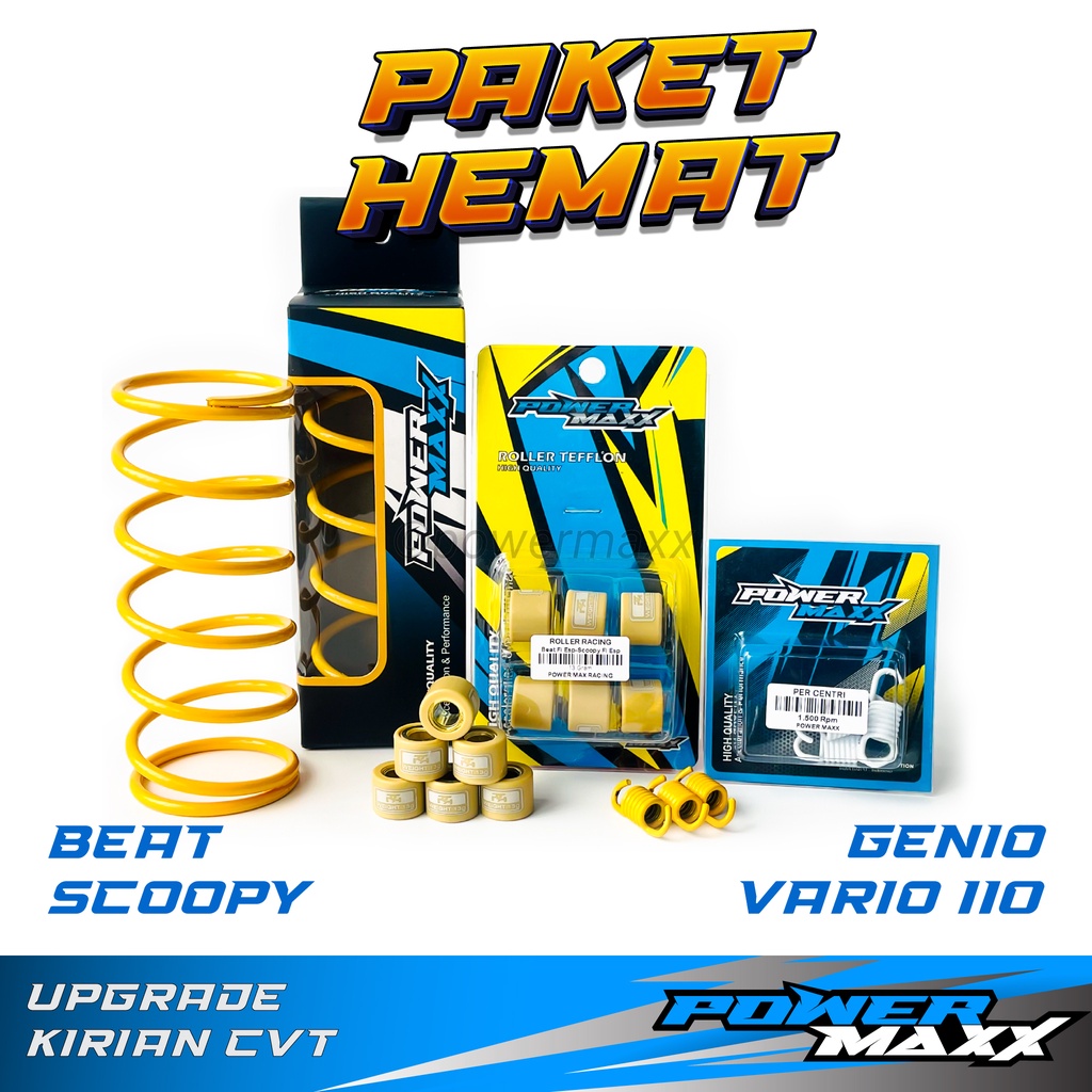 PAKET HEMAT UPGRADE KIRIAN CVT beat scoopy vario 110 spacy genio karburator karbu fi esp karburator karbu fi racing - Per CVT + Roller + Per Kampas Ganda - powermaxx power max powermax