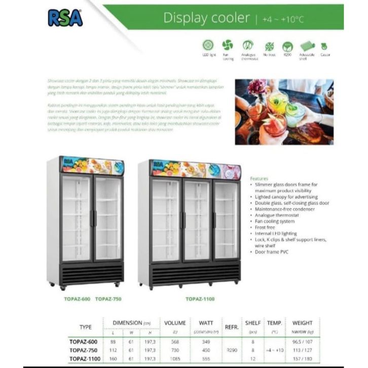 Showcase Cooler RSA 2 pintu 730ltr TOPAZ-750 TOPAZ-750IC ( lemari pendingin minuman )