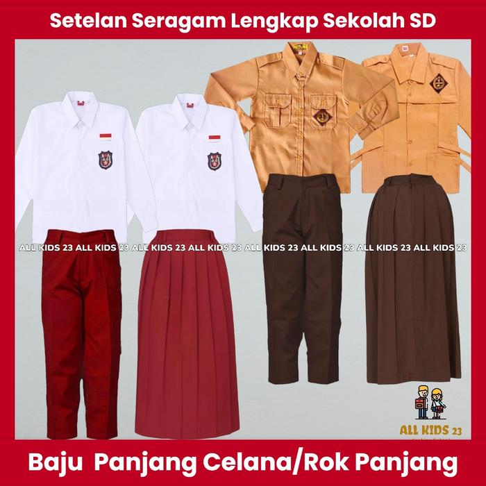 Seragam Sekolah SD Laki Baju Panjang Celana Panjang Cowok Merah Putih Pramuka Laki Laki Perempuan Anak Kids