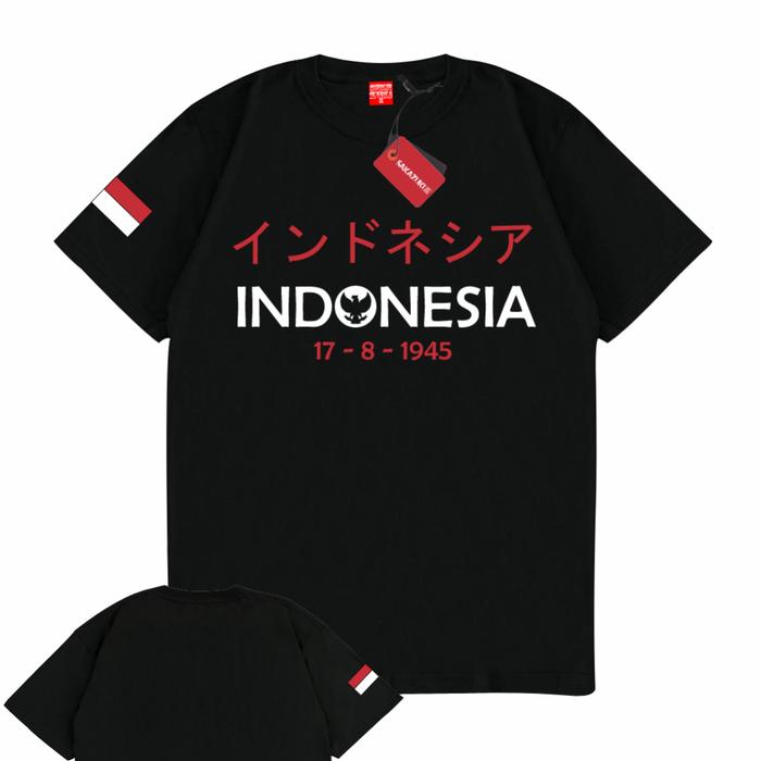 Kaos Pria Wanita Distro Indonesia Tulisan Tshirt Cotton Combed 17 Agustus Nasionalisme Garuda HUT RI 79 HIRAGANA JEPANG