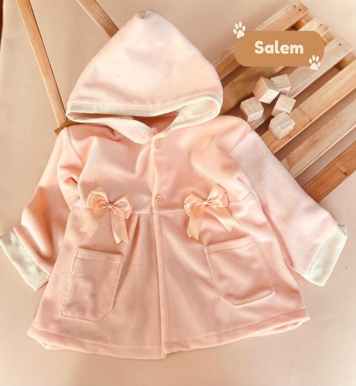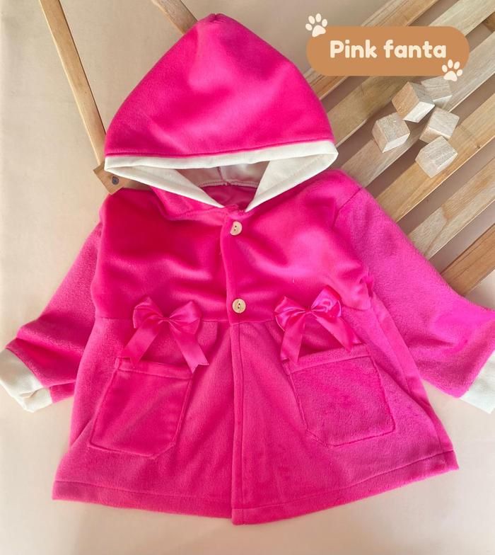 miby baby-Jaket Bayi Perempuan Usia 1-2 Tahun Bahan Beludru dengan Aksesoris Pita Cantik - PINK BABY