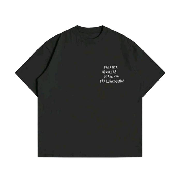 Kaos T-shirt GAYANYA BERKELAS UTANGNYA GAK LUNAS LUNAS Sablon Pendek Hitam Cowok Motif Digital Size S-XXL Katun Distro