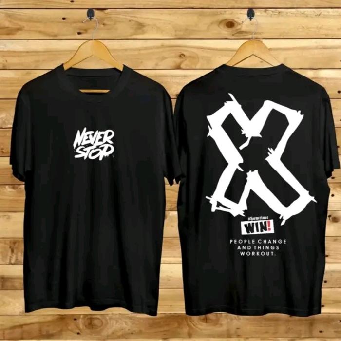 Baju Kaos Never Stop T-shirt Cowok Distro Keren Atasan Pria Wanita Kekinian fmsy