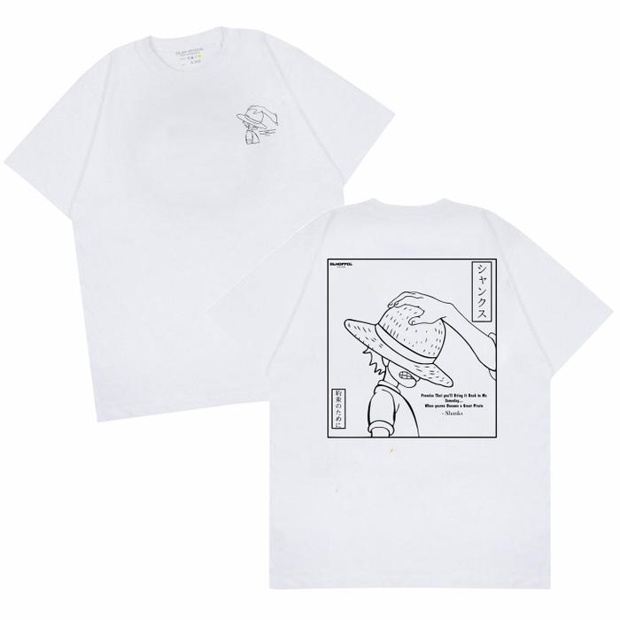 Pendek Kaos Pria Wanita Distro T shirt Cowok Cewek Cotton Combed 24s Monkey D Luffy Shanks Anime One Piece Unisex Keren